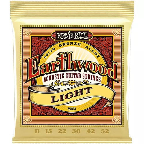 The light gauge of these strings offers comfortable playability for most acoustic guitars and playing styles. The lighter tension is easy on your fingertips, ideal if you have a lighter touch or play for long periods. The flexible feel allows for expressive techniques like bends and vibrato. If you prefer heavier strings, Ernie Ball also offers medium and heavy gages in the 2004 Earthwood line. Included string sizes are .011, .015, .022, .030, .042 and .052.