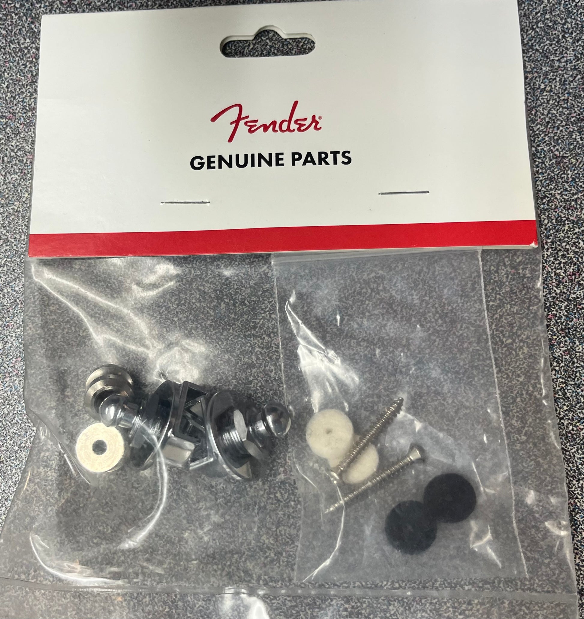 Genuine Fender special strap locks and buttons keep your favorite Fender guitar safe and secure. The set includes 2 locks, 2 buttons, 2 screws, and felt washers.
